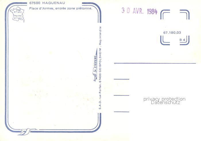 13617511 Haguenau Bas Rhin Place d’Armes entree zone pietonne postalisch nicht gelaufen Erhaltung siehe scans [WerneD78] Wern Katcode 11170067267180