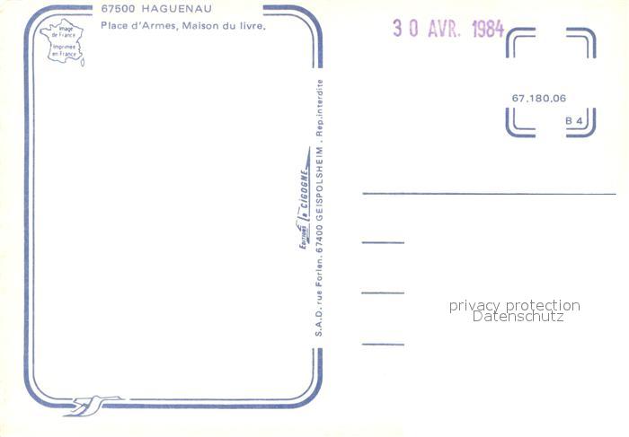 13617510 Haguenau Bas Rhin Place d’Armes Maison du livre postalisch nicht gelaufen Erhaltung siehe scans [WerneD78] Wern Katcode 11170067267180