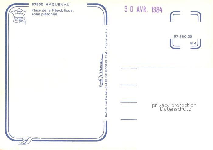13617514 Haguenau Bas Rhin Place de la Republique zone pietonne postalisch nicht gelaufen Erhaltung siehe scans [WerneD78] Wern Katcode 11170067267180