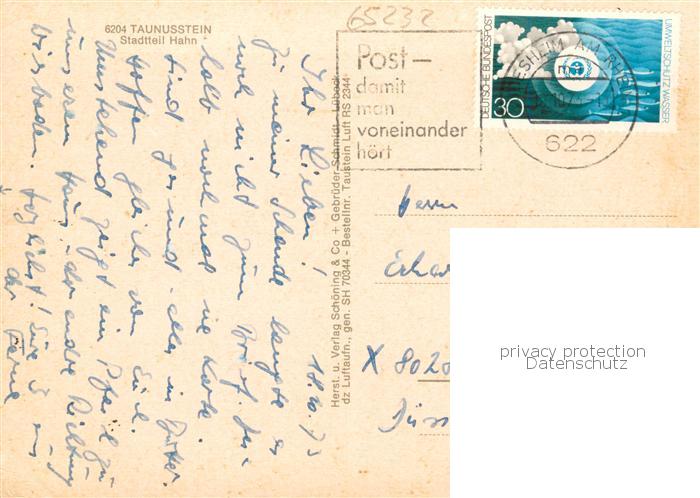 73858332 alte Postkarte Hahn Taunus Fliegeraufnahme postalisch gelaufen Erhaltung siehe scans [FriedD77] KatCode: 11110006439015