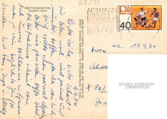 73858333 alte Postkarte Hahn Taunus Fliegeraufnahme postalisch gelaufen Erhaltung siehe scans [FriedD77] KatCode: 11110006439015