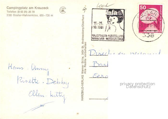73128433 alte Postkarte Hahnenklee Auerhahn Campingplatz am Kreuzeck postalisch gelaufen Erhaltung siehe scans [NatalD47] KatCode: 11110003153005
