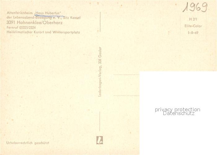 32983311 Hahnenklee Auerhahn Haus Hubertus postalisch nicht gelaufen Erhaltung siehe scans [AndreD76] KatCode: 11110003153005
