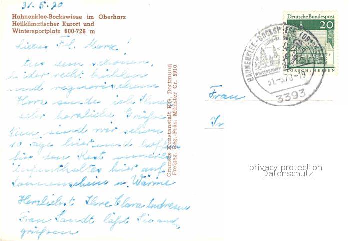 72847063 alte Postkarte Hahnenklee-Bockswiese Harz postalisch gelaufen Erhaltung siehe scans [NatalD47] KatCode: 11110003153005