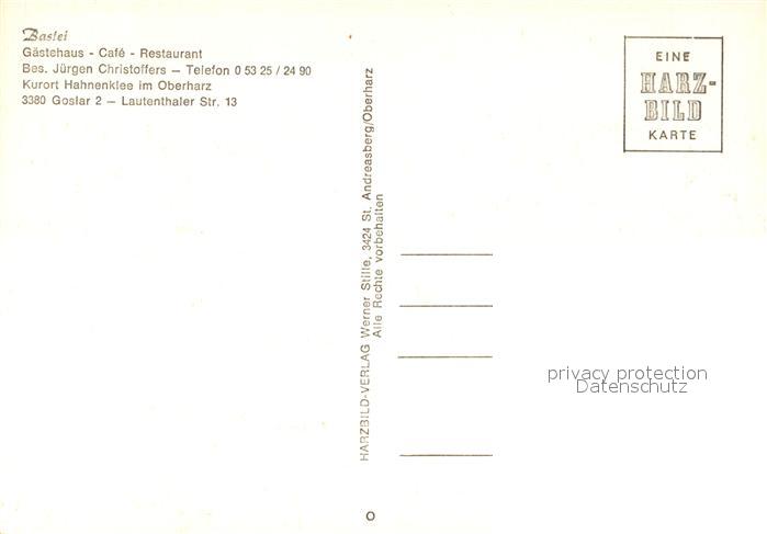 73172894 Hahnenklee-Bockswiese Harz Bastei Gaestehaus Cafe Restaurant postalisch nicht gelaufen Erhaltung siehe scans [LiesaD40] KatCode: 11110003153005