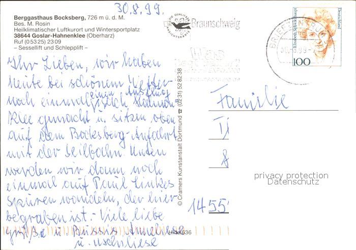 72247234 alte Postkarte Hahnenklee-Bockswiese Harz Berggasthaus Bocksberg postalisch gelaufen Erhaltung siehe scans KatCode: 11110003153005