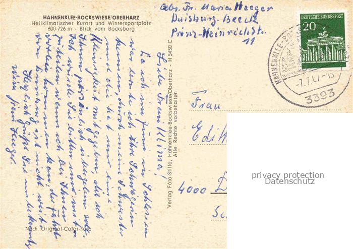 74042497 alte Postkarte Hahnenklee-Bockswiese Harz Blick vom Bocksberg postalisch gelaufen Erhaltung siehe scans [WerneD78] KatCode: 11110003153005