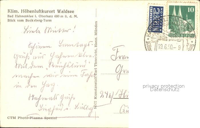 71928394 alte Postkarte Hahnenklee-Bockswiese Harz Blick vom Bocksberg Turm postalisch gelaufen Erhaltung siehe scans KatCode: 11110003153005