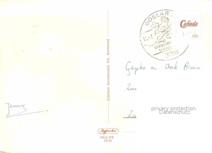 72914987 alte Postkarte Hahnenklee-Bockswiese Harz Blick zum Bocksberg Holzkirche Kurhotel Ortseingang Ferienpark postalisch gelaufen Erhaltung siehe scans [FriedD77] KatCode: 11110003153005