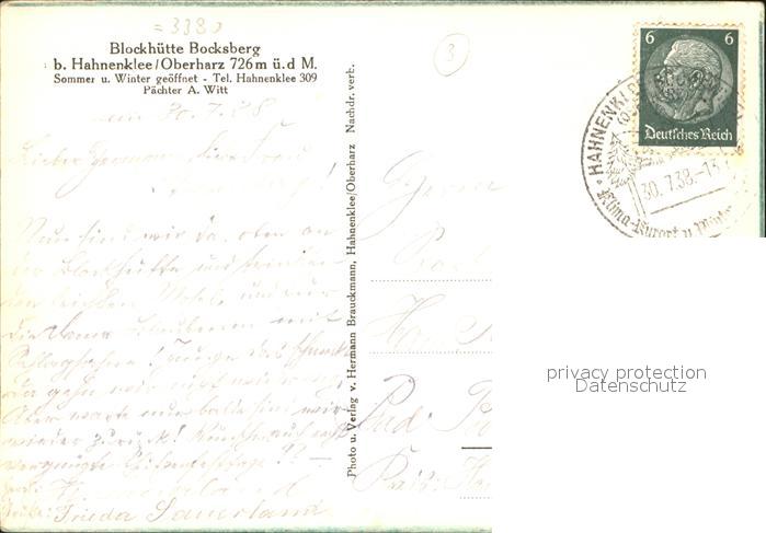 71571353 alte Postkarte Hahnenklee-Bockswiese Harz Blockhuette Bocksberg Gasthaus postalisch gelaufen KatCode: 11110003153005