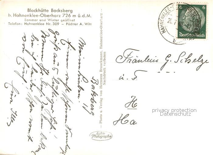 73812944 alte Postkarte Hahnenklee-Bockswiese Harz Blockhuette Bocksberg mit Turm postalisch gelaufen Erhaltung siehe scans [FriedD77] KatCode: 11110003153005