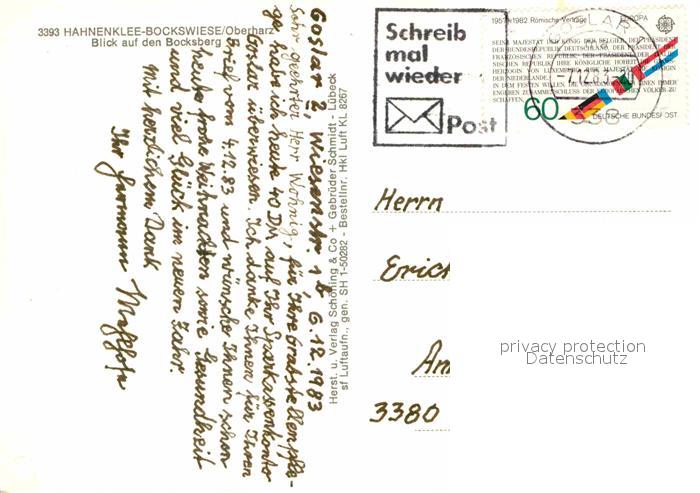 72849814 alte Postkarte Hahnenklee-Bockswiese Harz Bocksberg Fliegeraufnahme postalisch gelaufen Erhaltung siehe scans [NatalD47] KatCode: 11110003153005