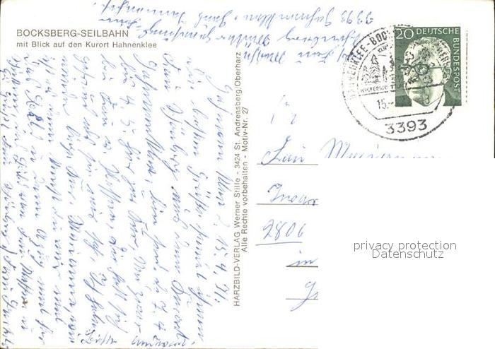 71952694 alte Postkarte Hahnenklee-Bockswiese Harz Bocksberg Seilbahn postalisch gelaufen Erhaltung siehe scans KatCode: 11110003153005