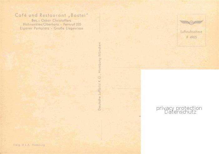 72882868 Hahnenklee-Bockswiese Harz Cafe Restaurant Bastei postalisch nicht gelaufen Erhaltung siehe scans [AndreD76] KatCode: 11110003153005
