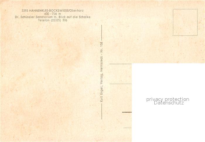 72988021 Hahnenklee-Bockswiese Harz Dr Schuessler Sanatorium Blick auf die Schalke postalisch nicht gelaufen Erhaltung siehe scans [FriedD77] KatCode: 11110003153005