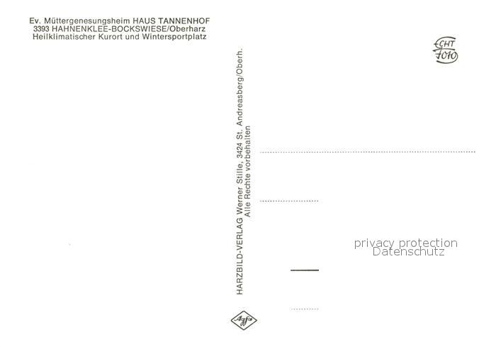 73335535 Hahnenklee-Bockswiese Harz Ev Muettergenesungsheim Haus Tannenhof postalisch nicht gelaufen Erhaltung siehe scans [FriedD77] KatCode: 11110003153005