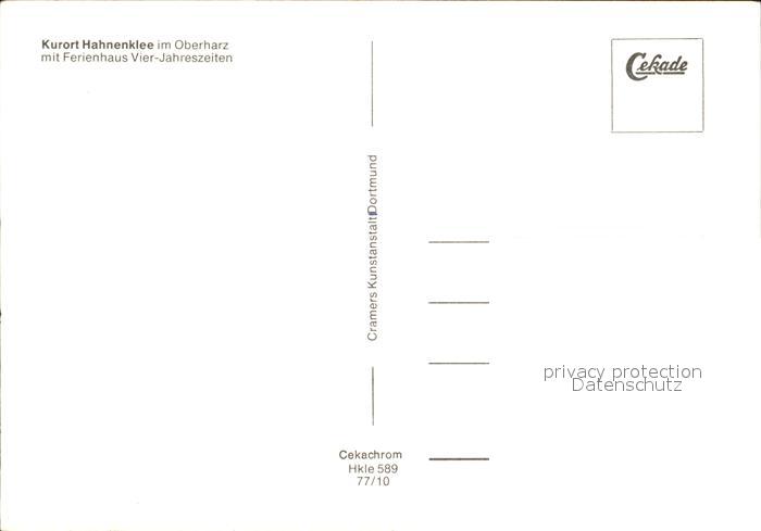 72421434 Hahnenklee-Bockswiese Harz Ferienhaus Vier-Jahreszeiten postalisch nicht gelaufen Erhaltung siehe scans KatCode: 11110003153005