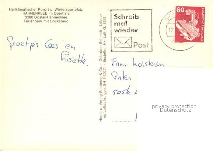 72929781 alte Postkarte Hahnenklee-Bockswiese Harz Ferienpark mit Bocksberg Fliegeraufnahme postalisch gelaufen Erhaltung siehe scans [WerneD78] KatCode: 11110003153005