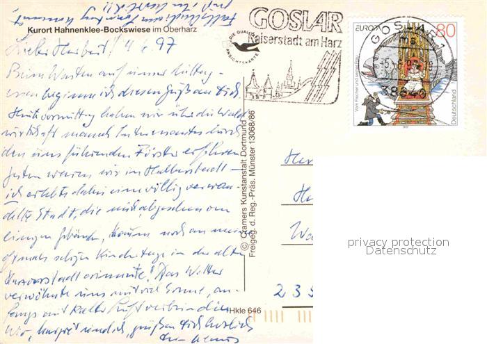 72842824 alte Postkarte Hahnenklee-Bockswiese Harz Fliegeraufnahme postalisch gelaufen Erhaltung siehe scans [AndreD76] KatCode: 11110003153005