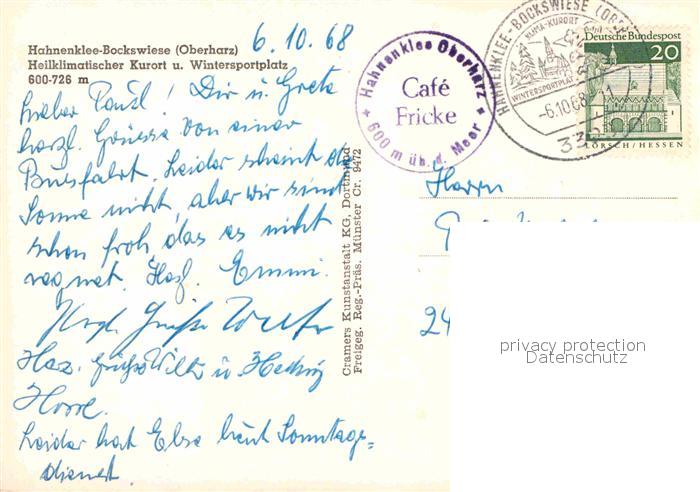 72683113 alte Postkarte Hahnenklee-Bockswiese Harz Fliegeraufnahme postalisch gelaufen Erhaltung siehe scans [WerneD78] KatCode: 11110003153005