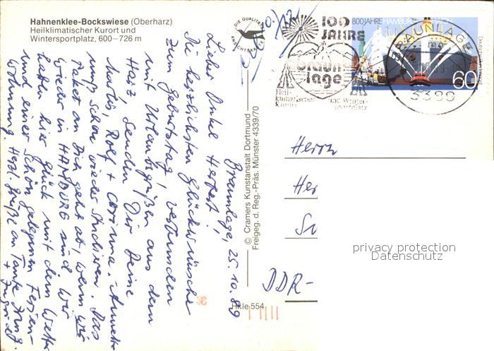 72543314 alte Postkarte Hahnenklee-Bockswiese Harz Fliegeraufnahme postalisch gelaufen Erhaltung siehe scans [WerneD78 kv016box] KatCode: 11110003153005