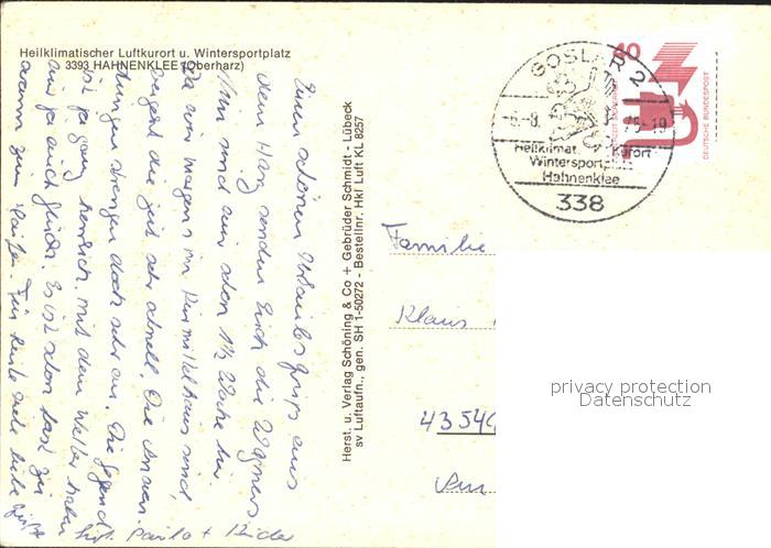 72179071 alte Postkarte Hahnenklee-Bockswiese Harz Fliegeraufnahme postalisch gelaufen Erhaltung siehe scans KatCode: 11110003153005