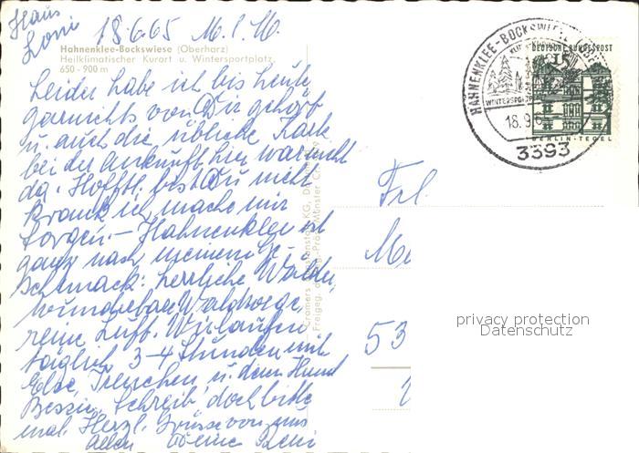 72063641 alte Postkarte Hahnenklee-Bockswiese Harz Fliegeraufnahme postalisch gelaufen Erhaltung siehe scans KatCode: 11110003153005