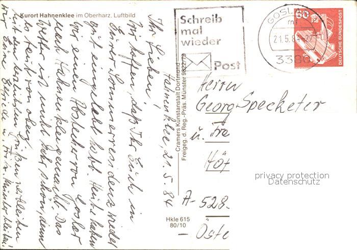 71859906 alte Postkarte Hahnenklee-Bockswiese Harz Fliegeraufnahme postalisch gelaufen Erhaltung siehe scans KatCode: 11110003153005
