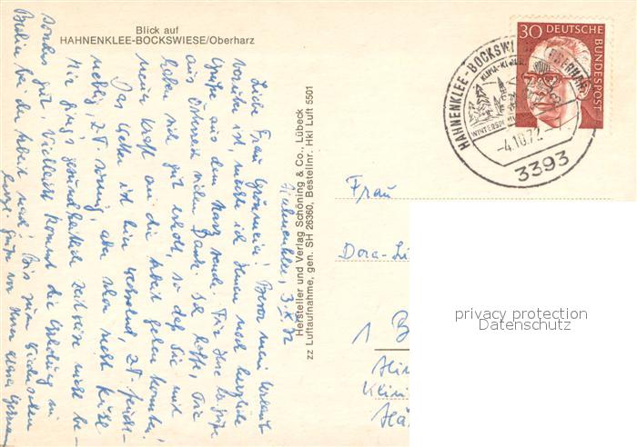 73686305 alte Postkarte Hahnenklee-Bockswiese Harz Fliegeraufnahme postalisch gelaufen Erhaltung siehe scans [FriedD77] KatCode: 11110003153005