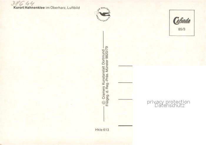 73668425 Hahnenklee-Bockswiese Harz Fliegeraufnahme postalisch nicht gelaufen Erhaltung siehe scans [WerneD78] KatCode: 11110003153005