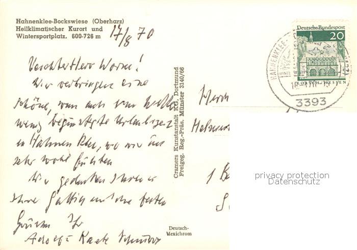 73615045 alte Postkarte Hahnenklee-Bockswiese Harz Fliegeraufnahme postalisch gelaufen Erhaltung siehe scans [PaolaD17] KatCode: 11110003153005