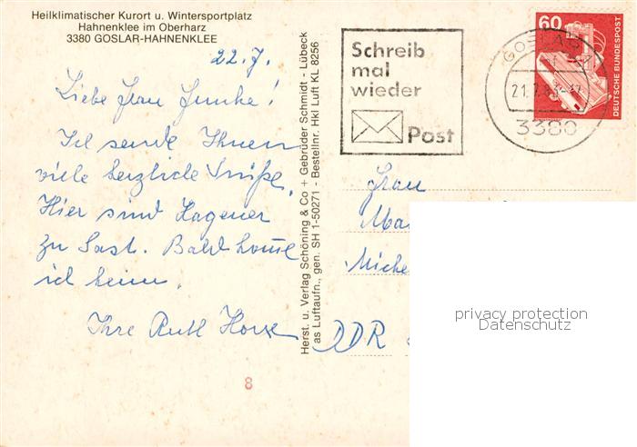 73836476 alte Postkarte Hahnenklee-Bockswiese Harz Fliegeraufnahme postalisch gelaufen Erhaltung siehe scans [FriedD77] KatCode: 11110003153005