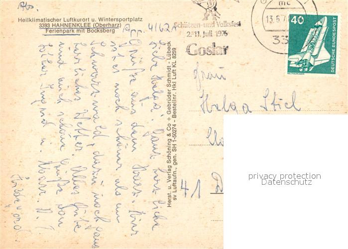 73176108 alte Postkarte Hahnenklee-Bockswiese Harz Fliegeraufnahme Bocksberg postalisch gelaufen Erhaltung siehe scans [NatalD47] KatCode: 11110003153005