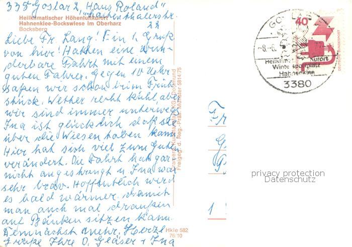 73757172 alte Postkarte Hahnenklee-Bockswiese Harz Fliegeraufnahme Bocksberg postalisch gelaufen Erhaltung siehe scans [LiesaD40] KatCode: 11110003153005