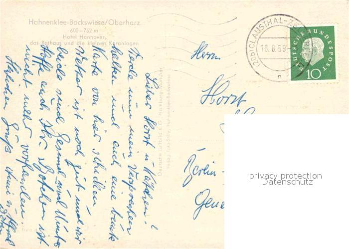 72872713 alte Postkarte Hahnenklee-Bockswiese Harz Fliegeraufnahme Hotel Hannover postalisch gelaufen Erhaltung siehe scans [LiesaD40] KatCode: 11110003153005