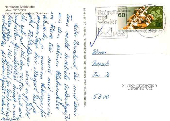 72790525 alte Postkarte Hahnenklee-Bockswiese Harz Fliegeraufnahme Nordische Stabkirche postalisch gelaufen Erhaltung siehe scans [LiesaD40] KatCode: 11110003153005