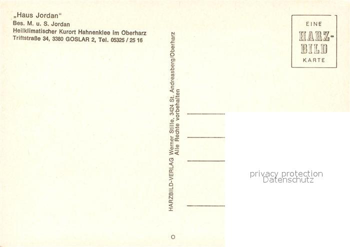 73323309 Hahnenklee-Bockswiese Harz Gaestehaus Pension Haus Jordan postalisch nicht gelaufen Erhaltung siehe scans [FriedD77] KatCode: 11110003153005