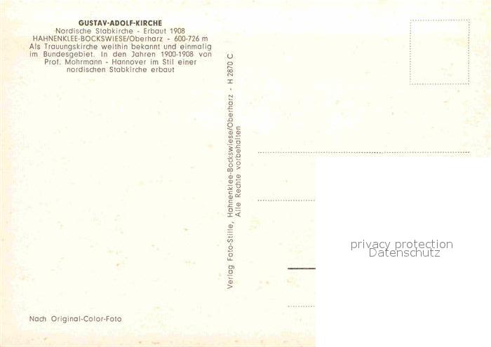 72622729 Hahnenklee-Bockswiese Harz Gustav Adolf Kirche postalisch nicht gelaufen Erhaltung siehe scans [WerneD78] KatCode: 11110003153005
