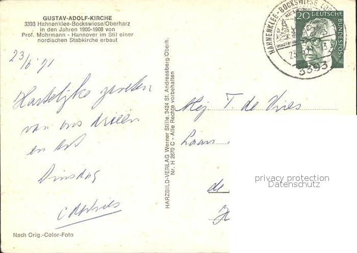 72520989 alte Postkarte Hahnenklee-Bockswiese Harz Gustav Adolf Kirche postalisch gelaufen Erhaltung siehe scans KatCode: 11110003153005