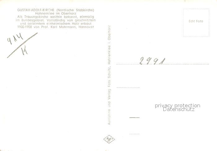 72939414 Hahnenklee-Bockswiese Harz Gustav Adolf Kirche postalisch nicht gelaufen Erhaltung siehe scans [WerneD78] KatCode: 11110003153005