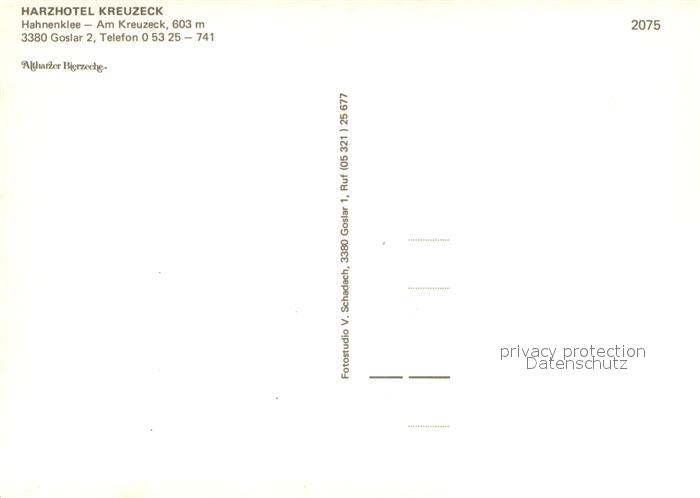 73726802 Hahnenklee-Bockswiese Harz Harzhotel Kreuzeck Restaurant Bar Altharzer Bierzeche postalisch nicht gelaufen Erhaltung siehe scans [FriedD77] KatCode: 11110003153005