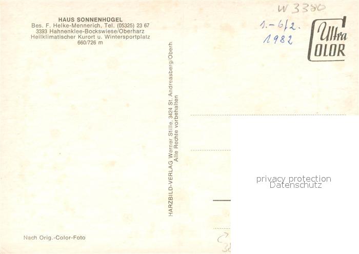 73711257 alte Postkarte Hahnenklee-Bockswiese Harz Haus Sonnenhuegel postalisch gelaufen Erhaltung siehe scans [WerneD78] KatCode: 11110003153005