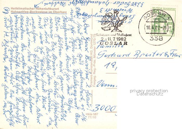 73706377 alte Postkarte Hahnenklee-Bockswiese Harz Heilklimatischer Hoehenluftkurort postalisch gelaufen Fliegeraufnahme Erhaltung siehe scans [FriedD77] KatCode: 11110003153005