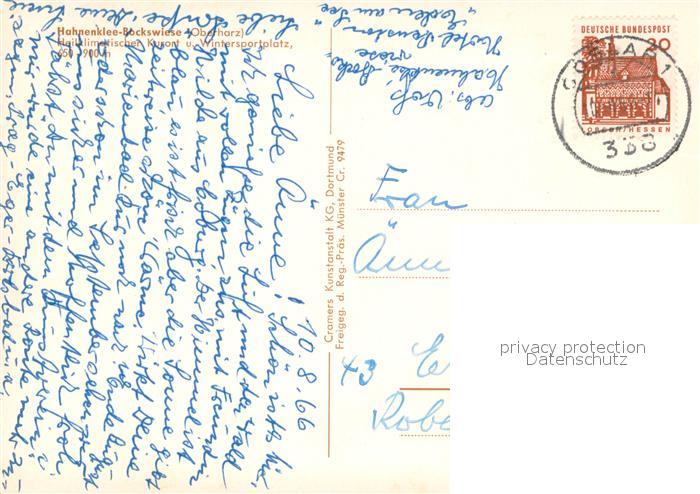 73617717 alte Postkarte Hahnenklee-Bockswiese Harz Heilklimatischer Kurort Fliegeraufnahme postalisch gelaufen Erhaltung siehe scans [FriedD77] KatCode: 11110003153005