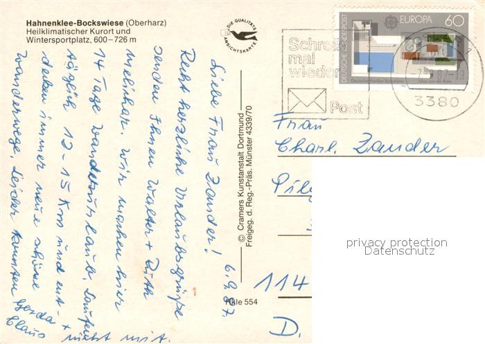 73686302 alte Postkarte Hahnenklee-Bockswiese Harz Heilklimatischer Kurort Wintersportplatz Fliegeraufnahme postalisch gelaufen Erhaltung siehe scans [FriedD77] KatCode: 11110003153005