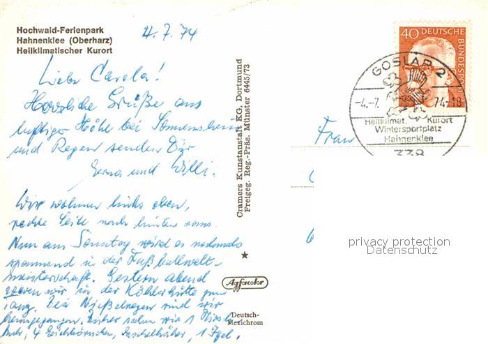 72779740 alte Postkarte Hahnenklee-Bockswiese Harz Hochwald Ferienpark Fliegeraufnahme postalisch gelaufen Erhaltung siehe scans [FriedD77] KatCode: 11110003153005