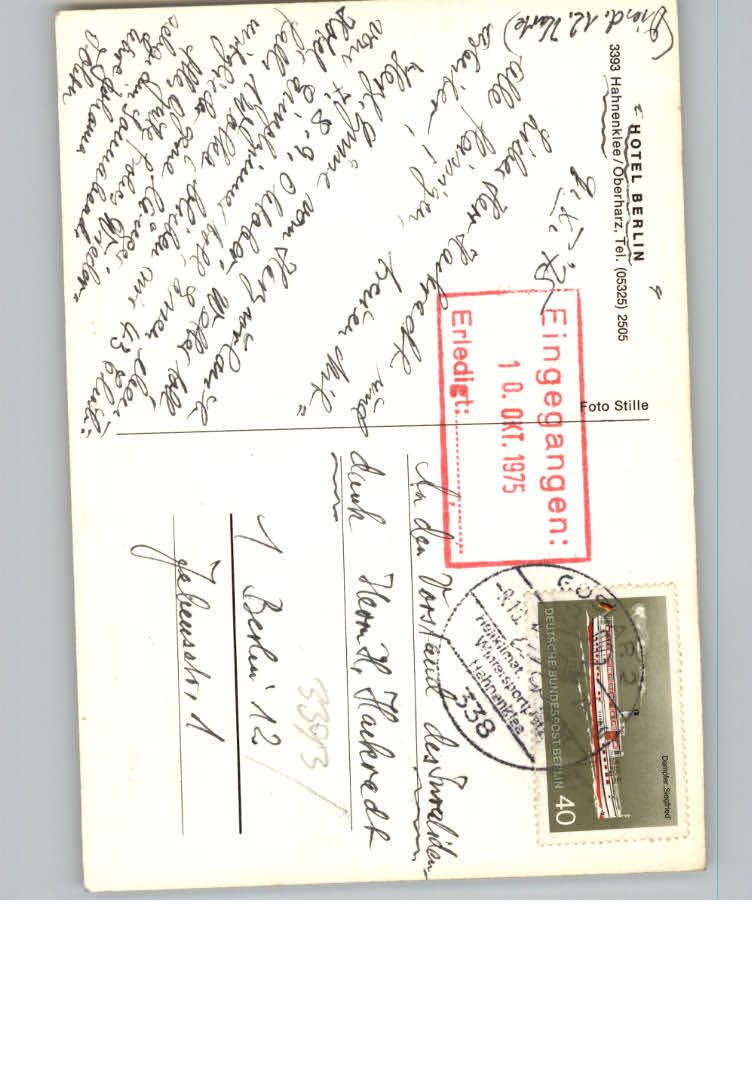 31168175 Hahnenklee-Bockswiese Harz Hotel Berlin postalisch nicht gelaufen KatCode: 11110003153005