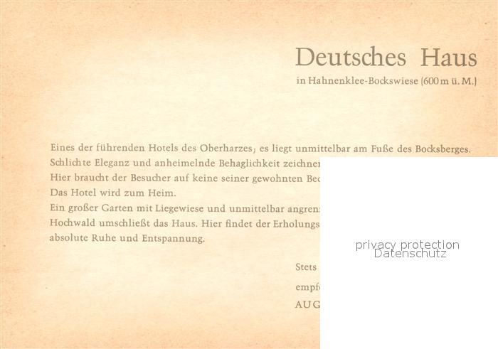73095799 Hahnenklee-Bockswiese Harz Hotel Deutsches Haus postalisch nicht gelaufen Keine Postkarte (siehe scan) Erhaltung siehe scans [NatalD47] KatCode: 11110003153005