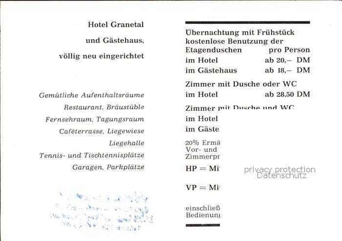 72427021 Hahnenklee-Bockswiese Harz Hotel Granetal Garten Restaurant Cafe postalisch nicht gelaufen Werbekarte (keine Postkarte) Erhaltung siehe scans KatCode: 11110003153005