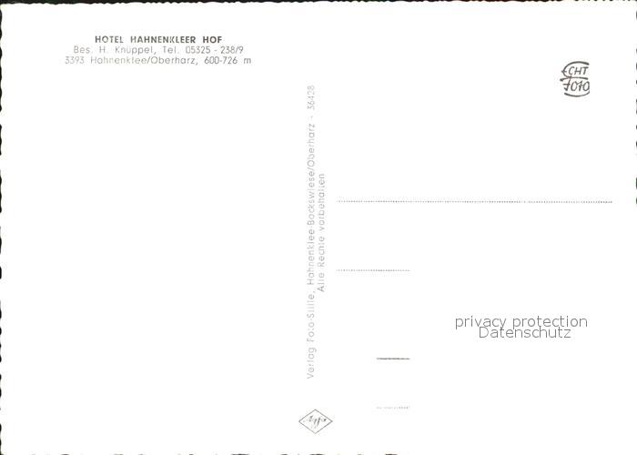 72507881 Hahnenklee-Bockswiese Harz Hotel Hahnenkleer Hof postalisch nicht gelaufen Erhaltung siehe scans KatCode: 11110003153005